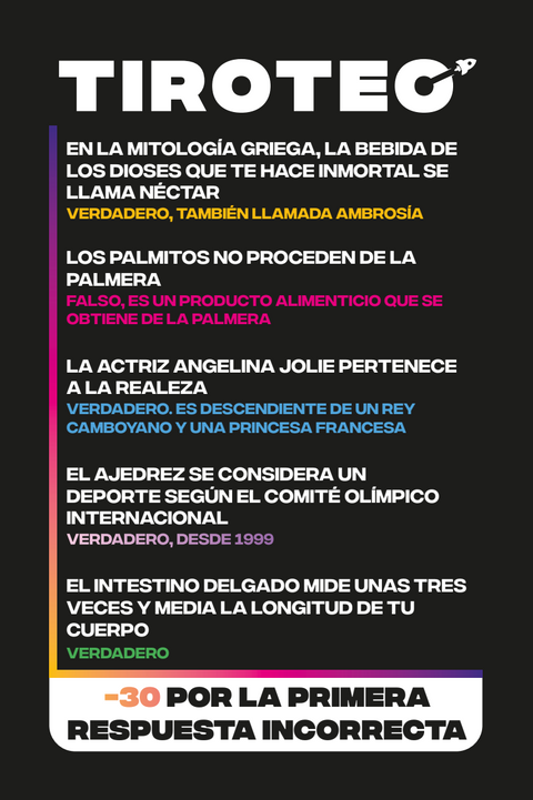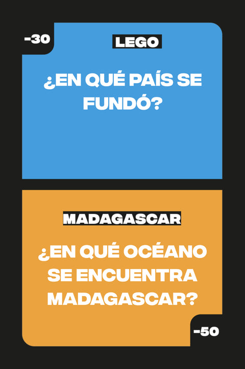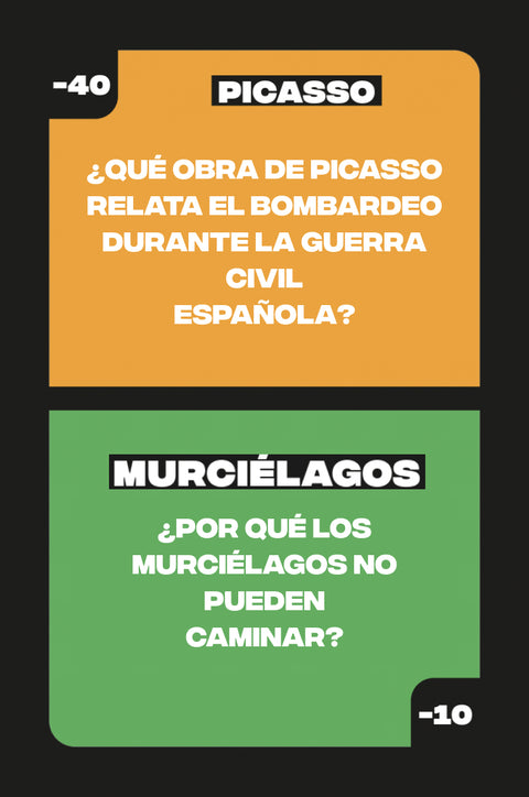 Caída Libre consta de un gran número de cartas divididas en 5 temas, que a su vez se dividen en varios subtemas. Historia, Cultura Pop, Deporte, Se Come y Ciencias: ¡el juego cuenta con una gran variedad de temas, lo cual divertirá tanto a niños como a adultos!